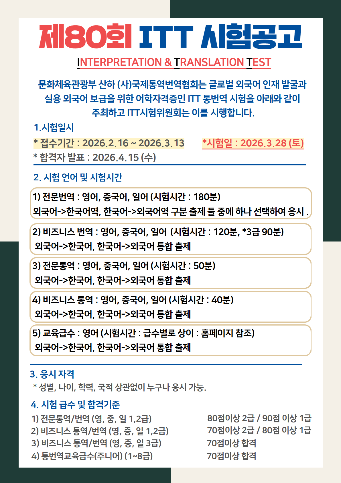 Á¦80ȸ ITT Åë¹ø¿ª ½ÃÇè °ø°í